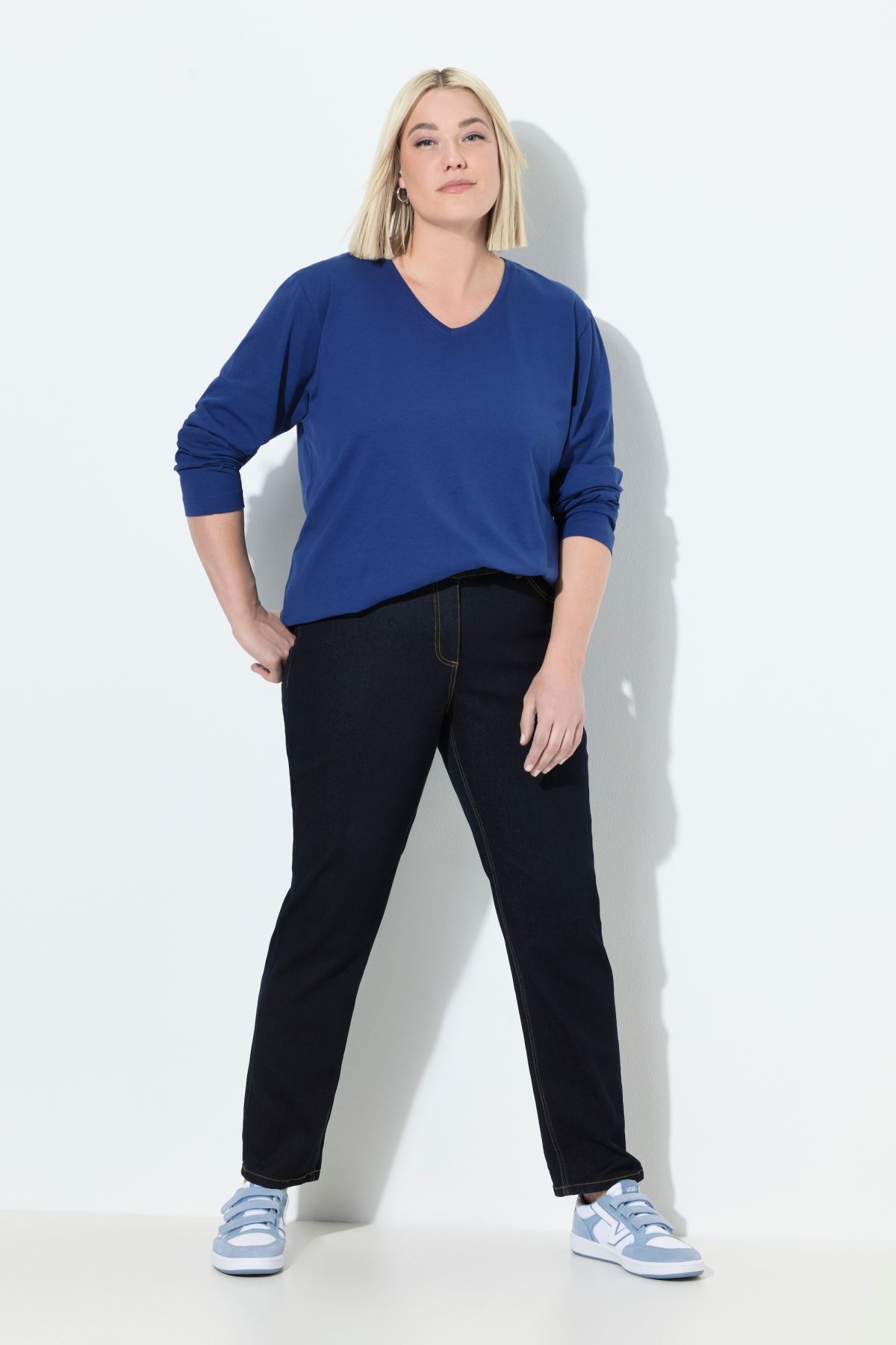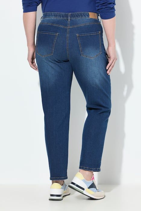 Coupe Boyfriend décontractée, Tissu denim agréablement élastique, Pantalon 5 poches, Taille confortable avec passants pour ceinture, Braguette zippée et bouton, Entrej. env. 70 cm.