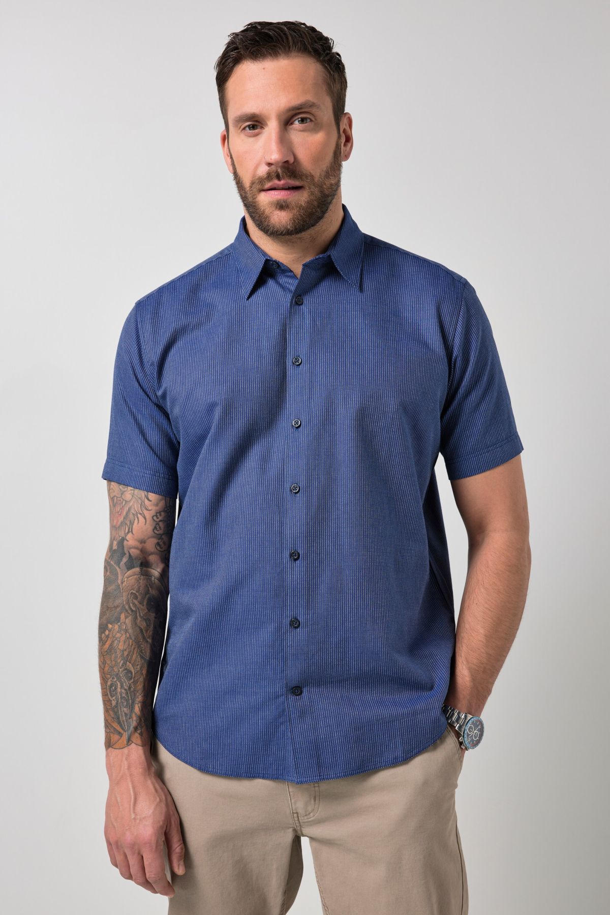 Coupe spéciale jusqu'au 8 XL, Matière raffinée à imprimé intégral, Coupe Comfort Fit, Col Kent, Boutons plus grands à partir du 4 XL, Long. selon taille env. 80-94 cm.