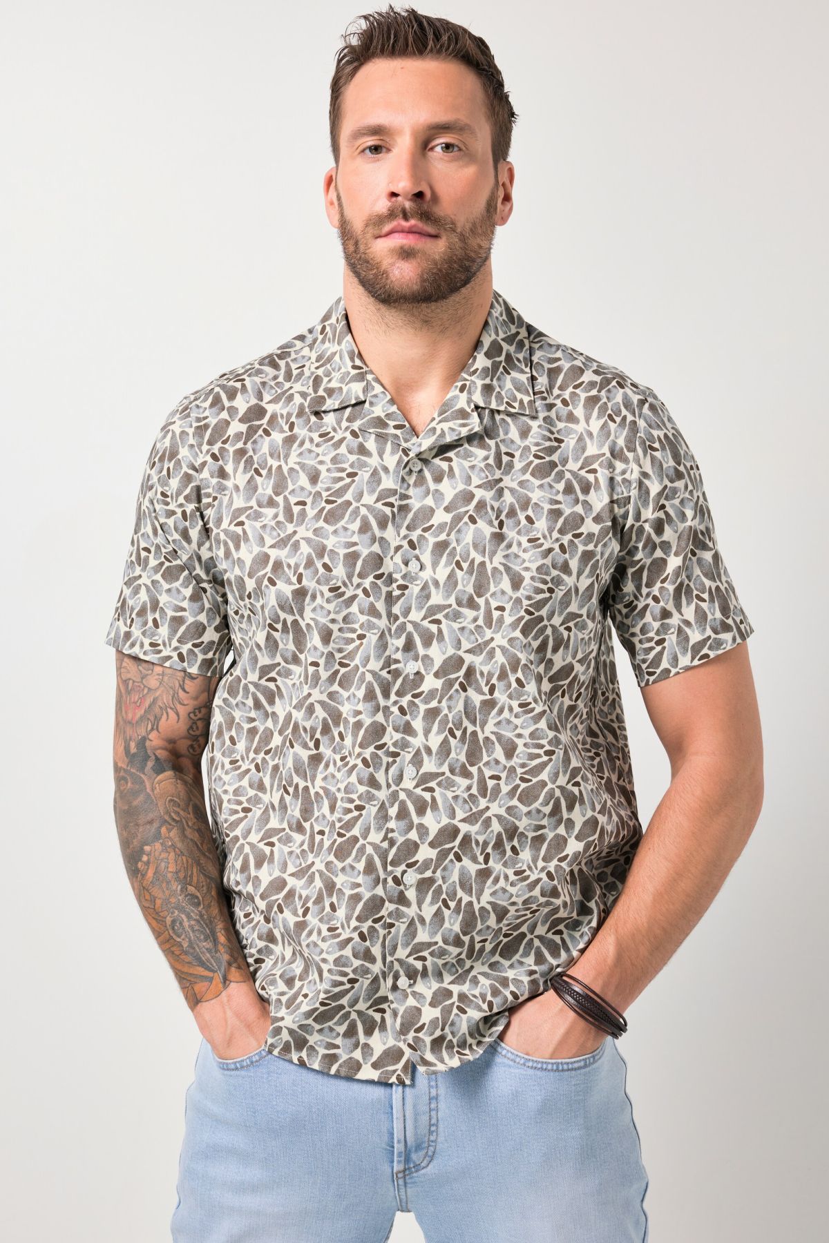 Coupe spéciale jusqu'au 8 XL, Lin mélangé, thermorégulateur, Imprimé floral all-over (intégral), Coupe Cuba Fit « flottante », Boutons plus grands à partir du 4 XL, Long. selon taille env. 77-93 cm.