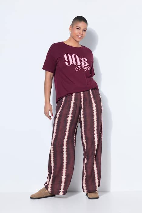 Coupe Wide Legs (jambe large), Taille haute, Rayures esprit batik, Taille élastique avec petit ruché, Entrej. env. 78 cm.