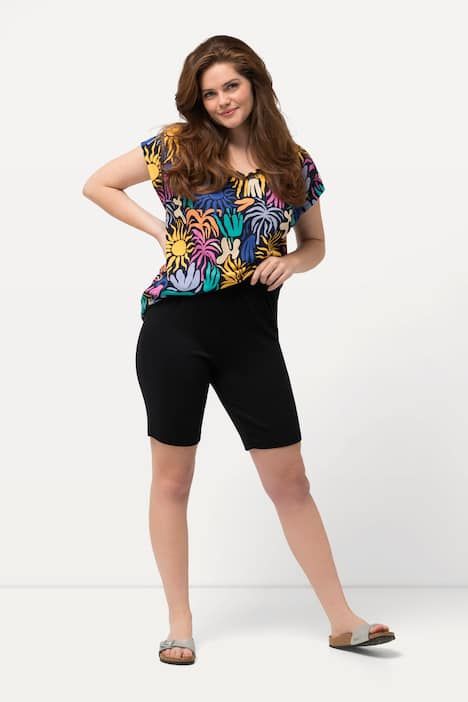Jersey interlock indéformable de grande qualité, Matière agréablement élastique, Coupe près du corps, Taille élastique confortable, Coton bio écologique enrichi en élasthanne, Entrej. env. 25 cm.