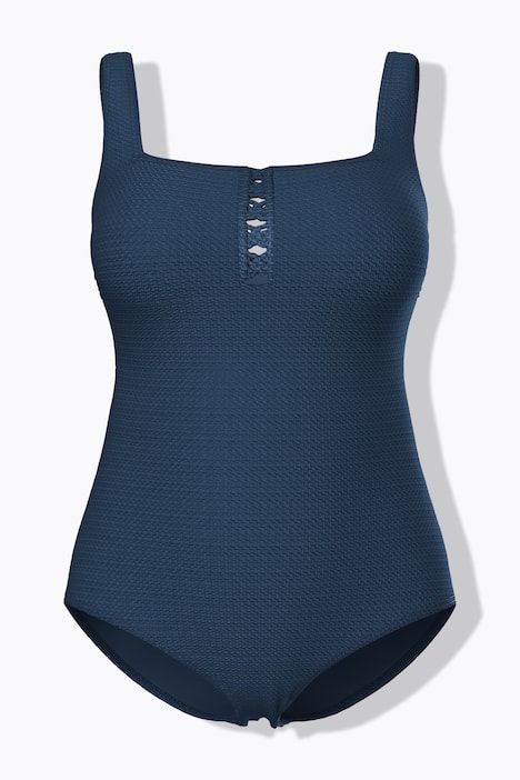 Imprimé tendance, texture gaufrée raffinée, Décolleté carré, Bonnets souples, Bande de soutien sous la poitrine, Doublure poitrine Powermesh douce