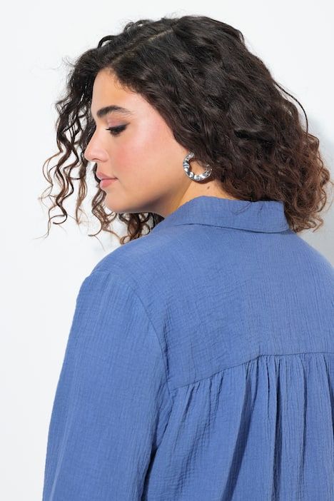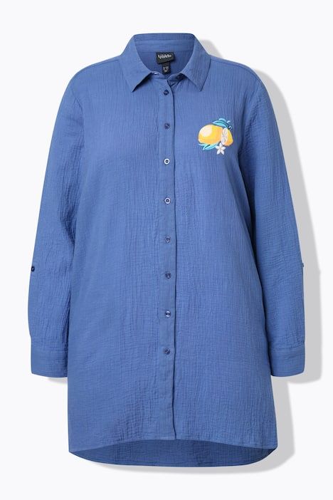 Broderies fantaisie motif citrons, Col chemise classique, Coupe évasée, base ample et confortable, Manches longues à poignets, Mousseline aérienne en pur coton, Long. env. 85 cm.