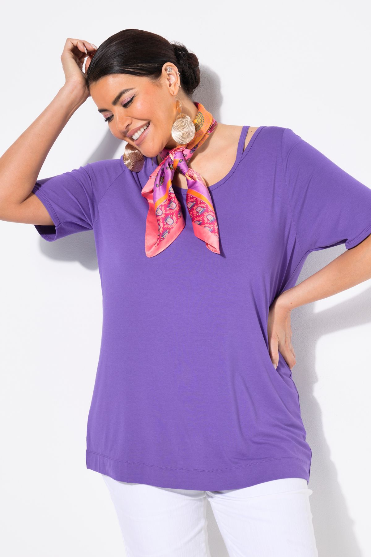 T-shirt à découpes. Encolure ronde et manches courtes. Coupe Classic
