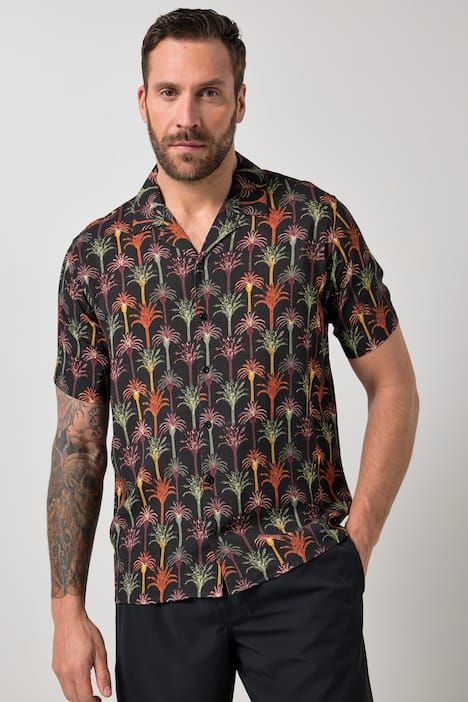Coupe spéciale jusqu'au 8 XL, viscose douce et confortable, imprimé à fleurs, Coupe Cuba Fit « flottante », Col cubain, Boutons plus grands à partir du 4 XL, Long. selon taille env. 77-93 cm.