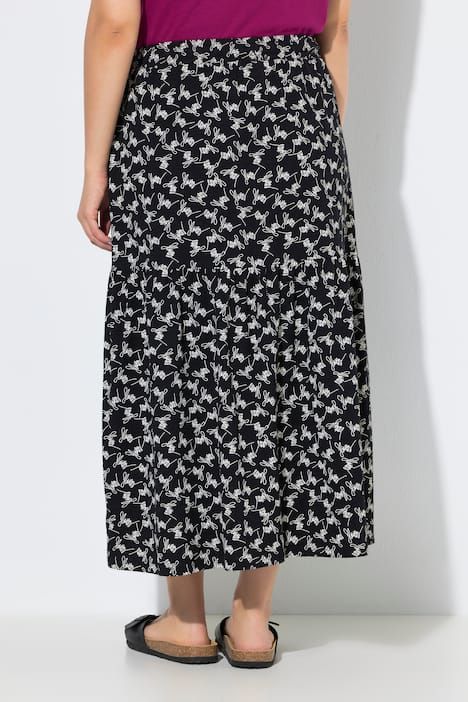 Superbe imprimé floral, Coupe évasée, base ample et confortable, Taille élastique et confortable, avec petit cordon de serrage, Large volant à la base, Jersey de coton élégamment texturé, doux et confortable, Long. env. 88 cm.