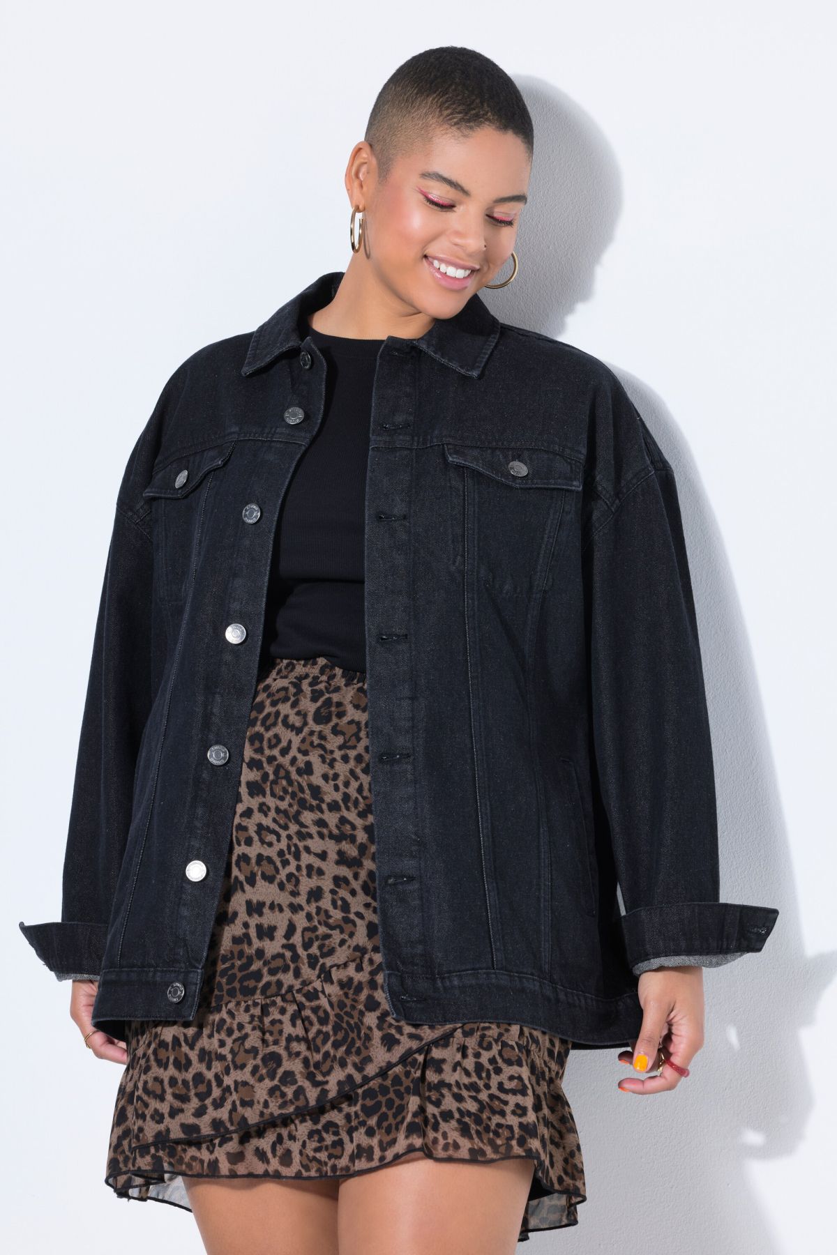 Coupe Boxy Fit oversize, Grande broderie dans le dos, Col chemise, 4 poches, Manches longues avec manchettes, Long. selon taille env. 74-82 cm.