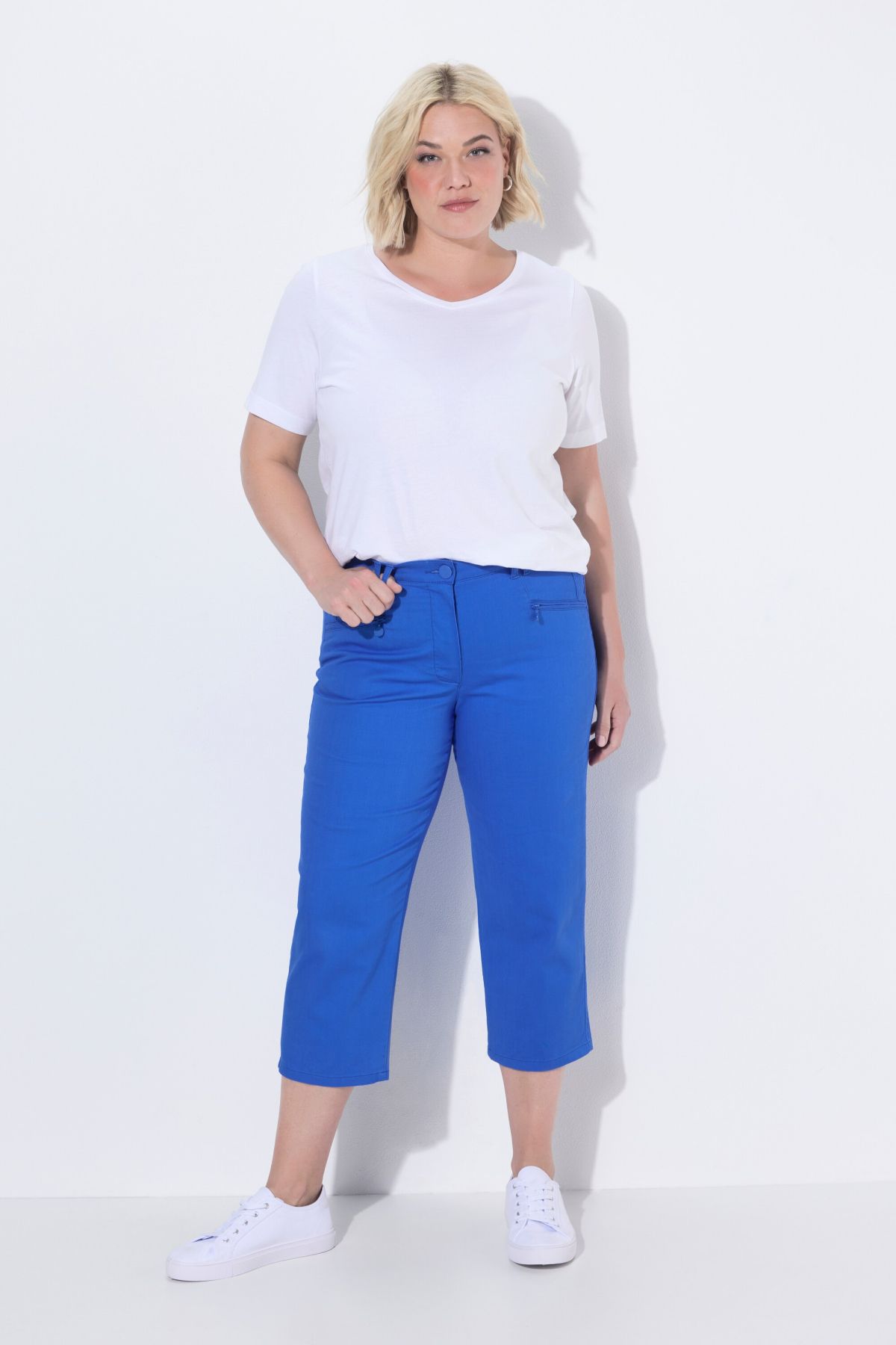 Longueur 7/8 sportive, Coupe Mony populaire et éprouvée, Taille confortable avec bouton et fermeture zippée, Passants pour ceinture, Matière extensible et confortable, Long. env. 58 cm.