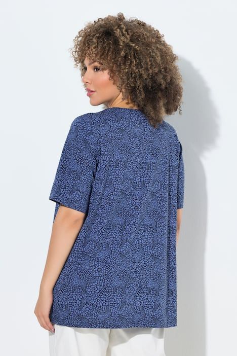 Motif girafes tendance, Décolleté en V avec petits plis fantaisie, Coupe évasée, base ample et confortable, Manches courtes, Pur coton, Long. selon taille env. 72-76 cm.