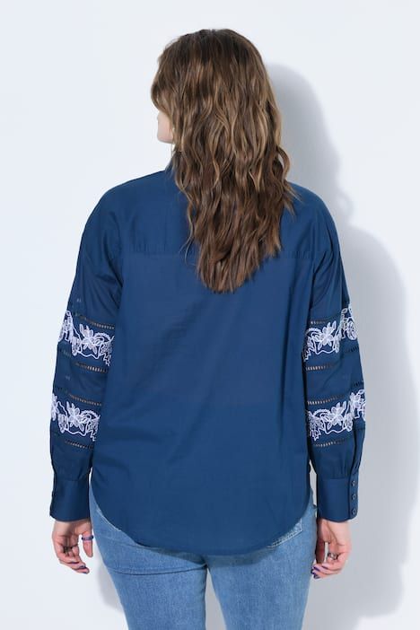 Coupe oversize, Motif à rayures, Manches longues avec dentelle, Ourlet arrondi, plus long au dos, Long. entrej. env. 76-80 cm.
