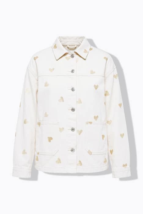Coupe oversize, Denim épais et souple, Coeurs, Col chemise, Fentes latérales arrondies, Long. entrej. env. 72-80 cm.