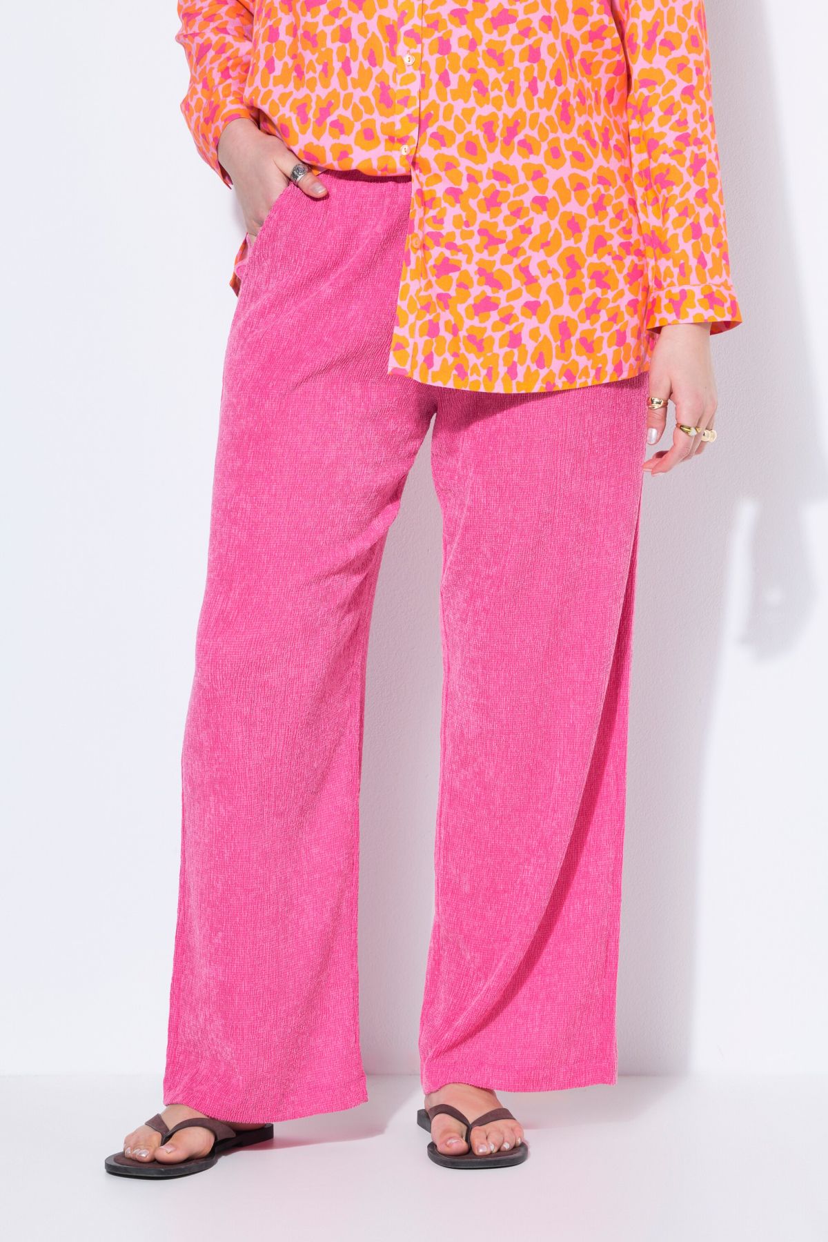 Jambes larges, En mélange de viscose agréablement doux, Texturé, Taille élastique, Entrej. env. 78 cm.