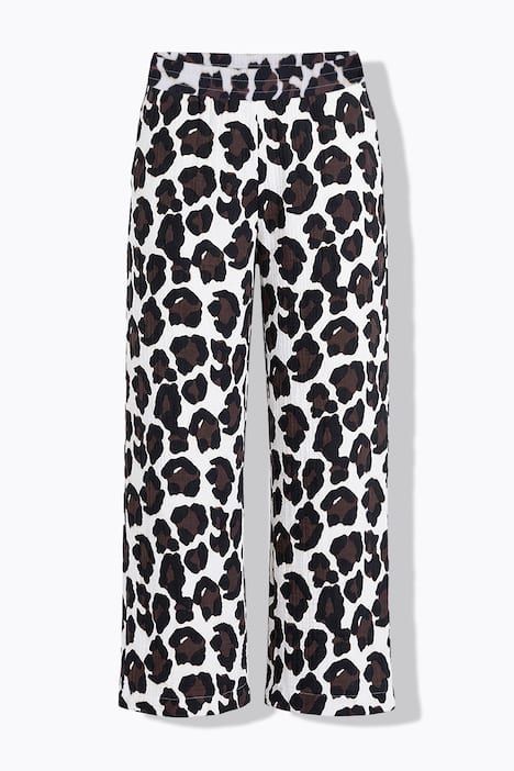 Jambes larges, Mousseline finement texturée, Imprimé léopard, Taille élastique, Entrej. env. 78 cm.