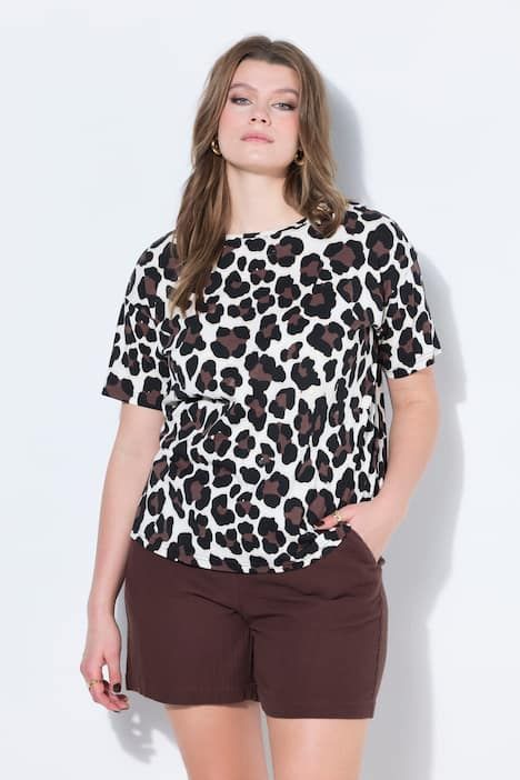 Coupe oversize, Jersey doux, Imprimé léopard, Message néon, Manches mi-longues, Long. entrej. env. 65-73 cm.