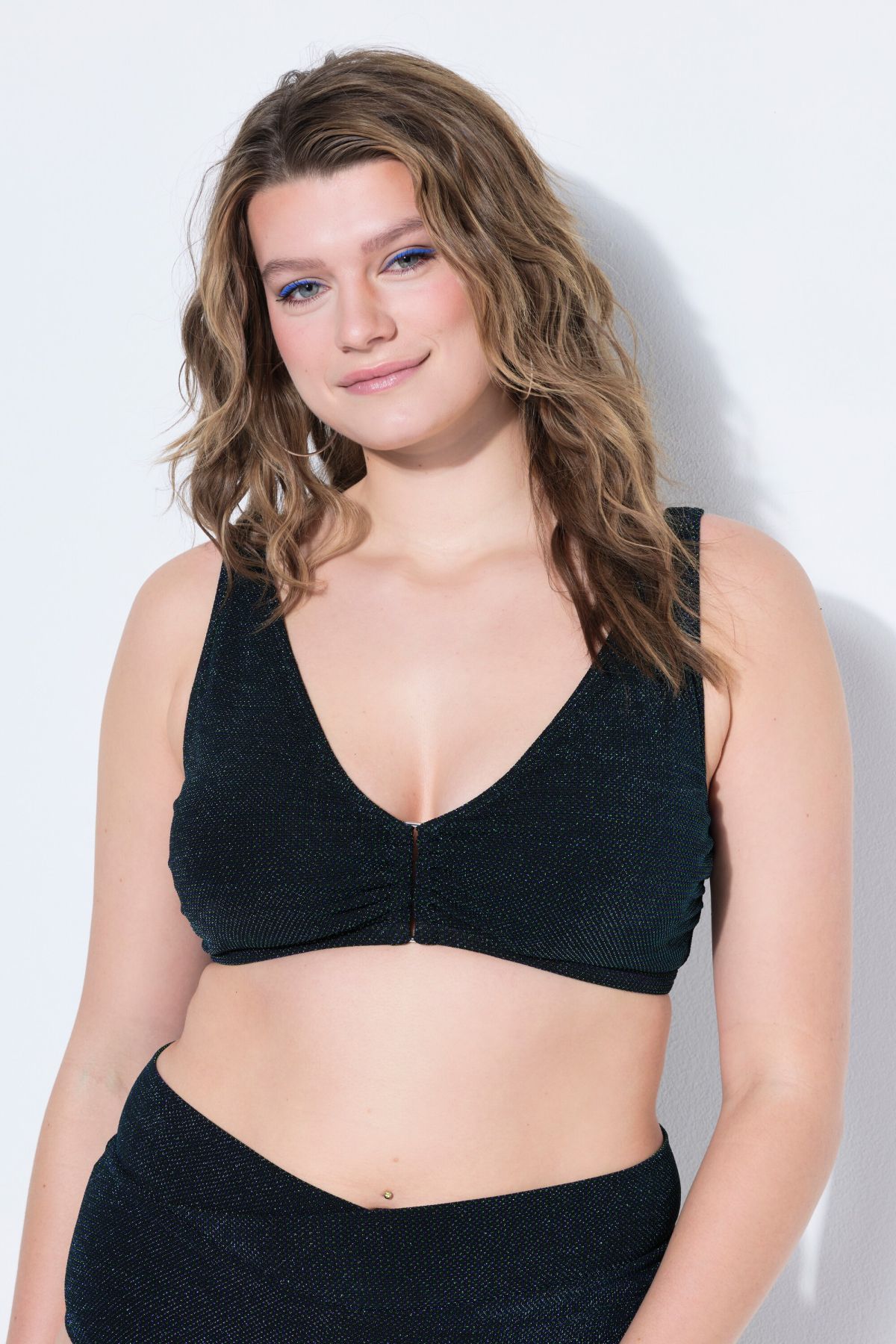 Haut de bikini pailleté, bonnets souples, anneau décoratif
