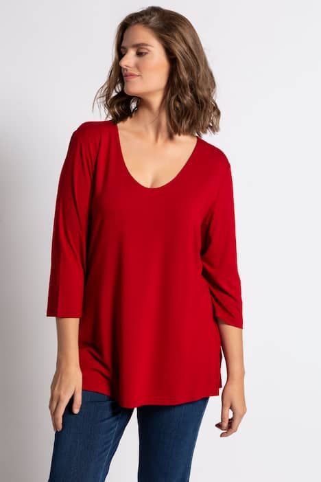 Devant doublé pour un tombé sans plis, Coupe près du corps, Col V arrondi, Manches 3/4 mettant vos poignets en valeur, Jersey de viscose au tombé fluide, enrichi en élasthanne, Long. entrej. env. 68-76