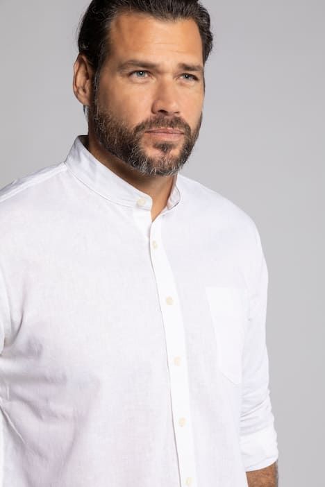 Chemise en lin mélangé JP 1880, manches longues et col officier, coupe Modern Fit - jusqu'au 8 XL