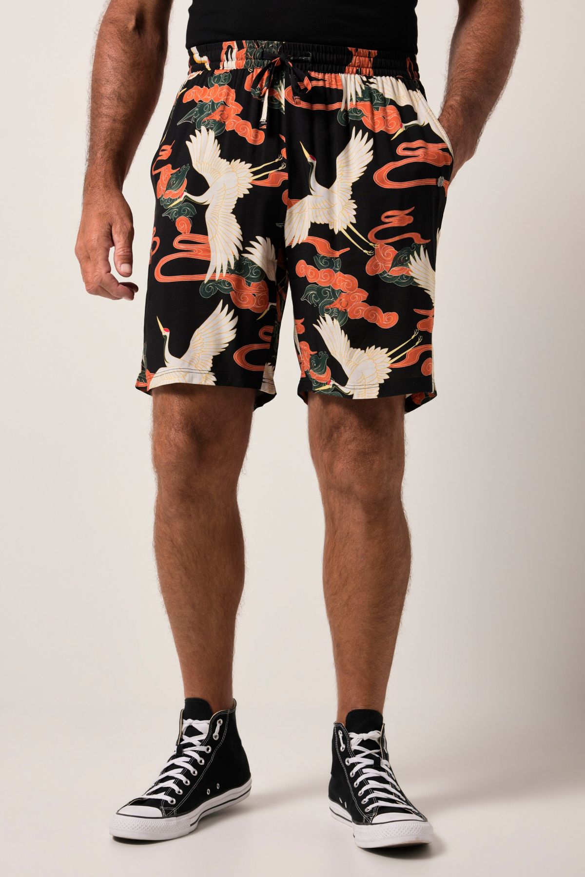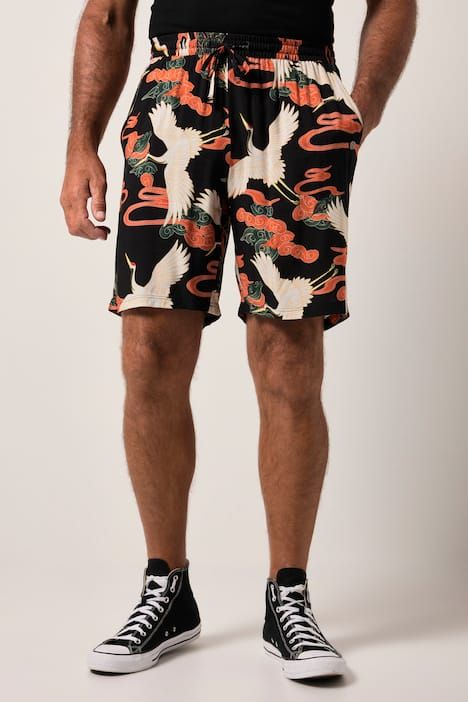 Coupe spéciale jusqu'au 8 XL, Viscose douce et confortable, Imprimé floral all-over (intégral), Taille élastique, Chemise assortie : référence 840079, Entrej. env. 23 cm.