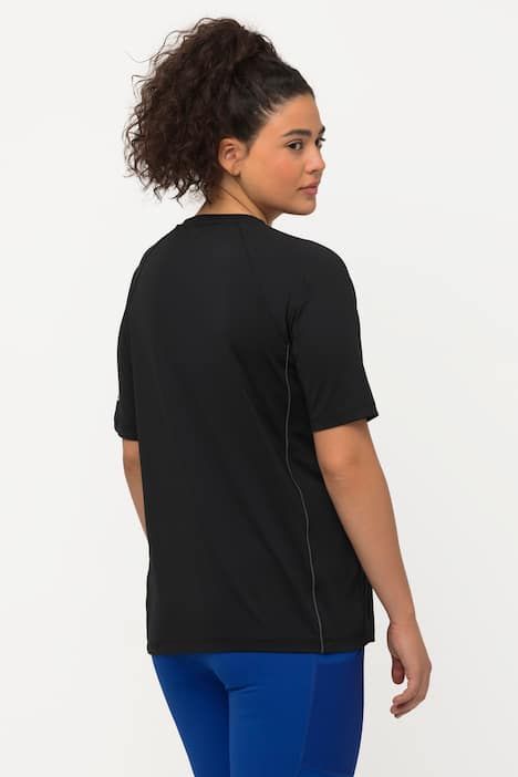 Protection UV 50+ longue durée, Jersey texturé et respirant, à séchage rapide, Contient du polyester recyclé, plus respectueux de l'environnement, Passepoil sur le côté, Manches courtes raglan, Long. selon taille env. 68-76 cm.