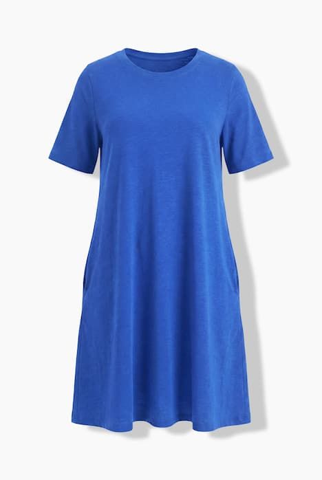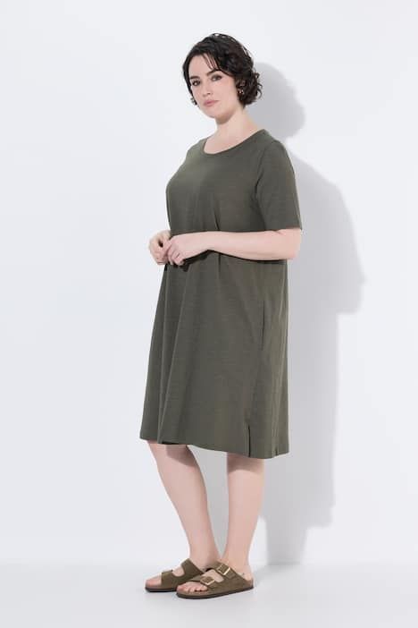 Jersey flammé finement texturé de haute qualité, Label OEKO-TEX Made in Green, Coupe évasée, poches latérales réservées dans la couture, Fentes sur les côtés pour une plus grande liberté de mouvement, Pur coton, Long. env. 100-104 cm.