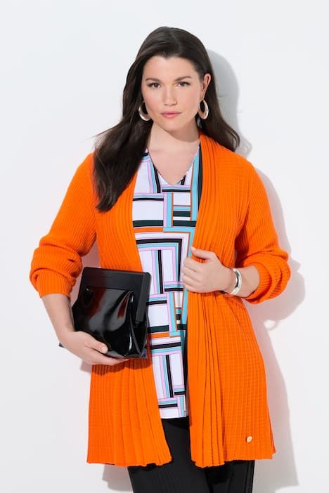 Maille formant d'élégants plis, Col châle, Coupe évasée confortable, Veste décontractée, coupe ouverte, sans fermeture, Bords plats à la base et aux extrémités des manches, Long. env. 86 cm.