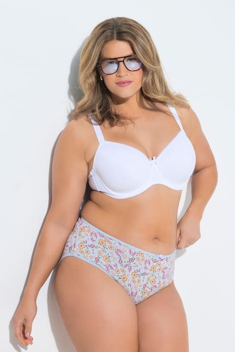 Lot de 5 culottes midi à prix attractif, Modèle couvrant les fesses, tour de cuisse moyennement échancré, Haut niveau de confort, Hauteur sur le côté : env. 11 cm (taille 44+), Gousset en pur coton