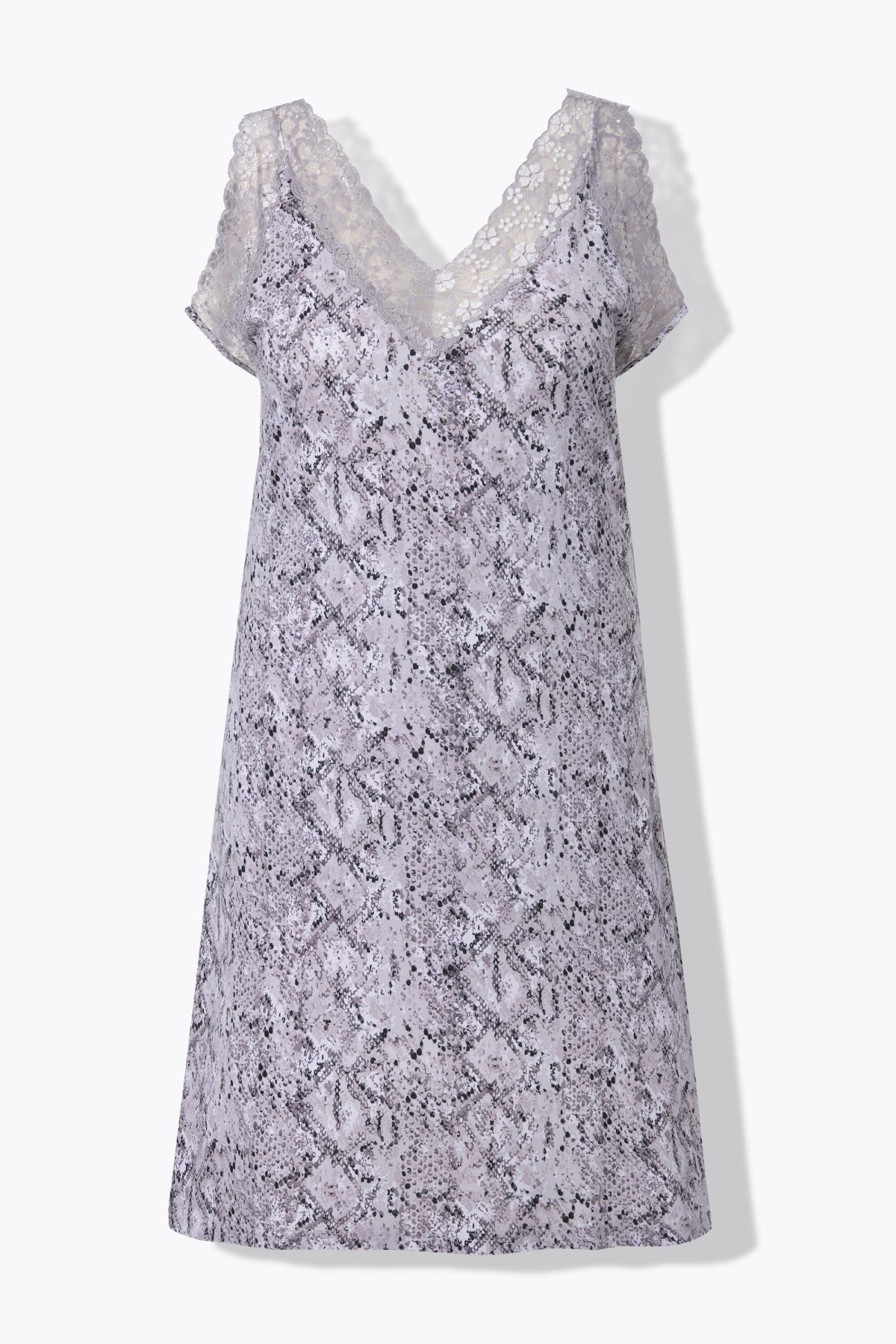 Coupe évasée, Dentelle transparente et motif peau de serpent, Décolleté en V avec large liseré en dentelle, Bretelles également en dentelle, Base large et confortable, Long. env. 92 cm.