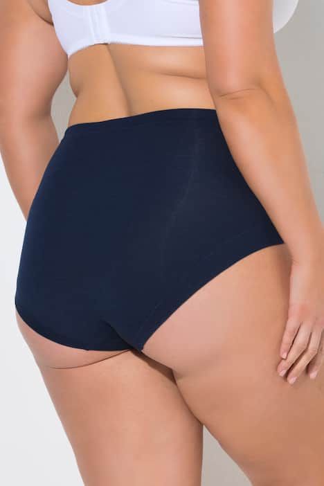 3 culottes maxi à prix attractif, Modèle couvrant les fesses, taille haute, Tour de cuisse moyennement échancré, Hauteur sur le côté : env. 18 cm (taille 44/46), Gousset en pur coton