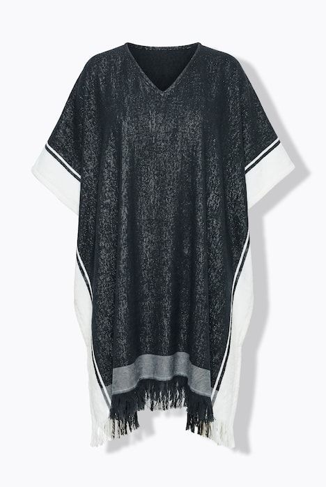 Rayures contrastantes sur les côtés, Encolure en V, Coupe ample et épaules très basses, Fentes sur les côtés (au niveau de la base), dos env. 10 cm plus long, Molleton doux et confortable, en pur coton, Long. env. 100 cm.