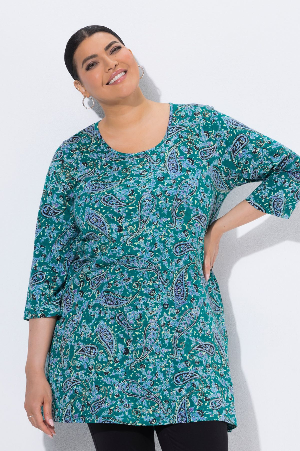 T-shirt long motif cachemire, décolleté rond et manches 3/4