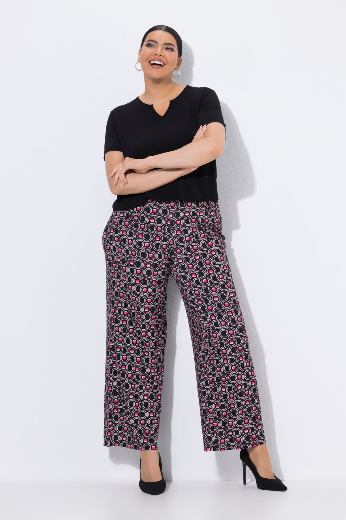 Imprimé graphique tendance, Jambe droite, Taille élastique confortable, Deux poches sur les côtés, Tissu jersey élastique et particulièrement lisse, Entrej. env. 76 cm.