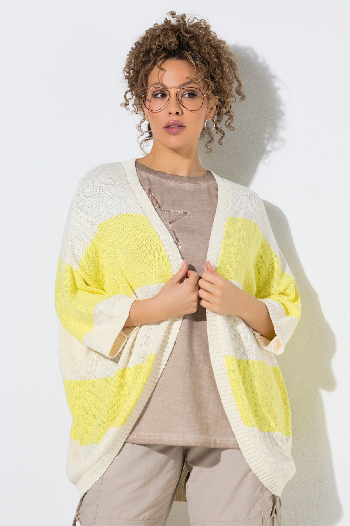 Cardigan à rayures, silhouette en O et manches 3/4 chauve-souris