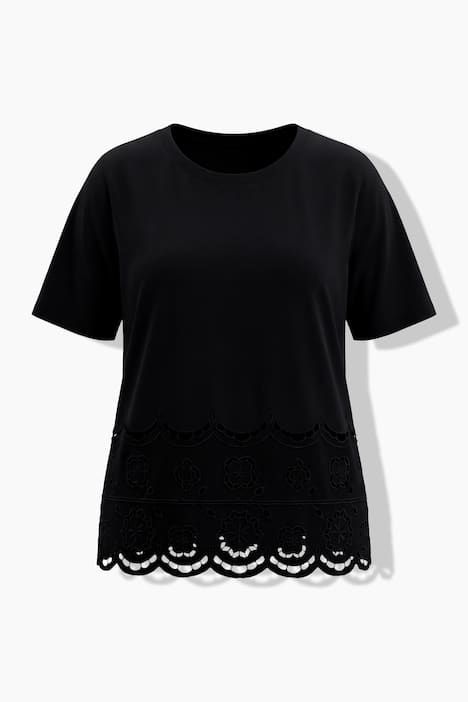 T-shirt oversize, dentelle ajourée, décolleté rond et manches courtes