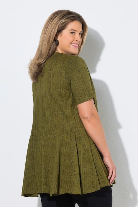 Blouse motif chevrons, col tunisien et manches courtes, plis godet