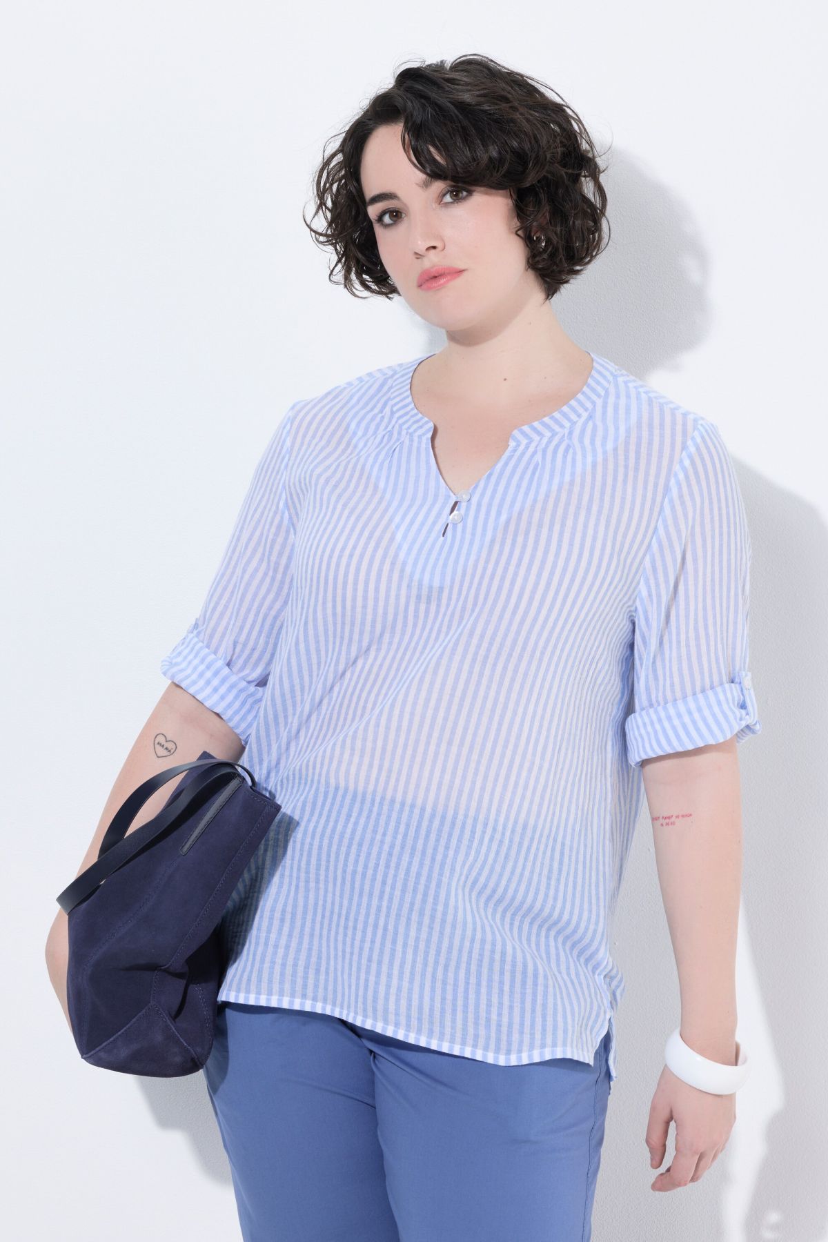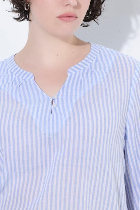 Crêpe de coton dans un imprimé tendance, Décolleté rond avec patte de boutonnage, Base arrondie, Manches 3/4 avec manchettes, Pur coton, Long. selon taille env. 75-79 cm.