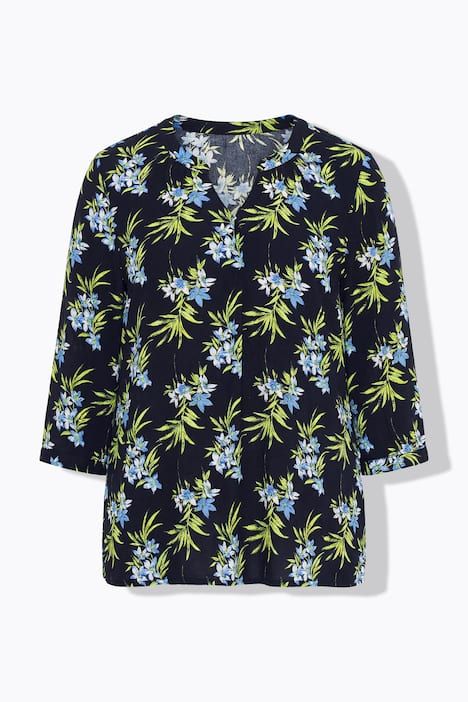 Imprimé tendance, Décolleté rond avec patte de boutonnage, Base arrondie, Manches 3/4 avec manchettes, Viscose douce et confortable, au tombé fluide, Long. selon taille env. 75-79 cm.