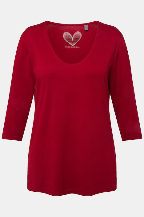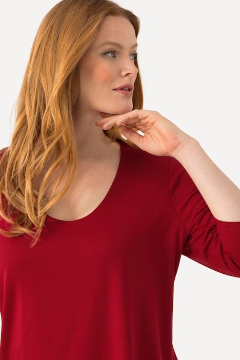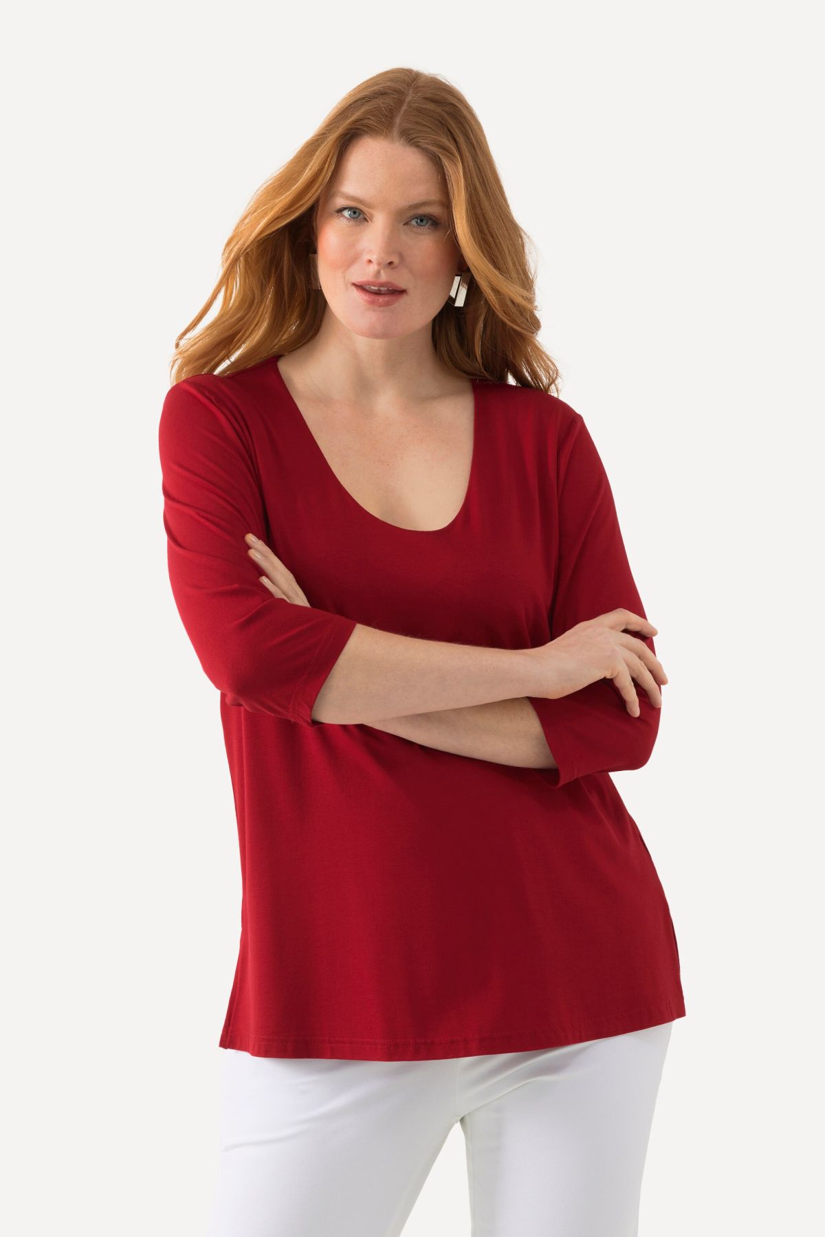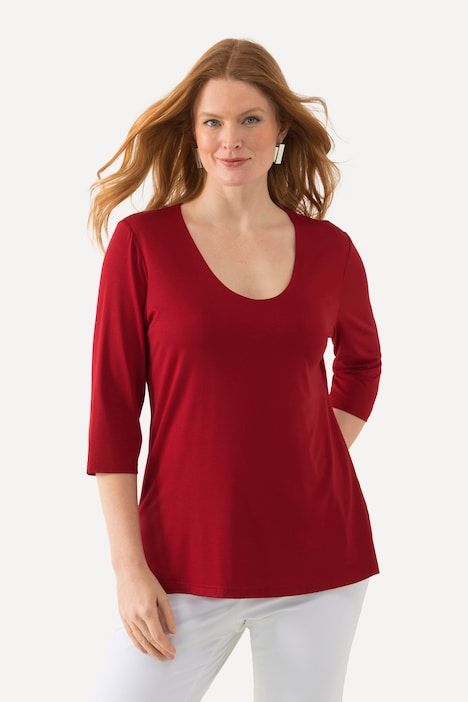 Le T-shirt simple pour tous les jours ou assorti pour une tenue plus classe. Il est en crêpe et le devant est entièrement doublé. L´encolure est ronde pour un magnifique décolleté - les manches sont 3/4. Coupe : slim.& 10;<br> selection-Highlight: Le devant est entièrement doublé. Le dessus a un tombé lisse et sans plis. Effet stylé garanti.& 10;<br> Les manches 3/4 affinent le bras et soulignent les poignets. Petites fentes sur les côtés.& 10;<br> Textile contrôlé et certifié selon le standard OEKO-TEX Standard 100, numéro de contrôle : 14.0.49629.& 10;<br> & 10;<br> & 10;<br> Mode haut de gamme pour vous ! & 10;<br>Selection by Ulla Popken - la ligne haut de gamme avec style et élégance ! selection by Ulla Popken transforme les classiques en pièces phares contemporaines, réalisées dans des matières de haute qualité, de beaux imprimés et agrémentées de petits détails – une mode parfaite au quotidien et pour les occasions spéciales. & 10;<br>Chaque modèle offre un savoir-faire inégalé en matière d'ajustement, des matériaux de la plus haute qualité et des techniques de traitement sophistiquées. & 10;<br>& 10;<br>Le cœur „C’EST BIEN – CONTINUONS“, indique que le vêtement est en partie ou même entièrement fabriqué de façon durable.& 10;<br>