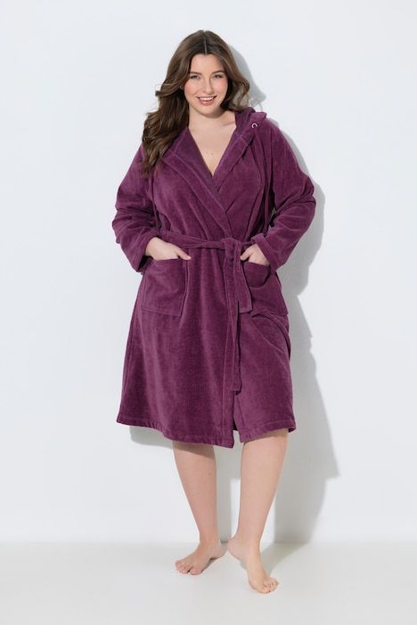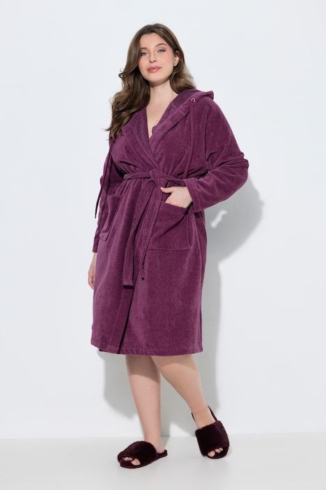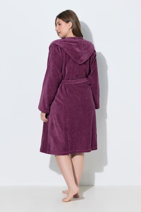 Peignoir à capuche en éponge, ceinture et coupe évasée