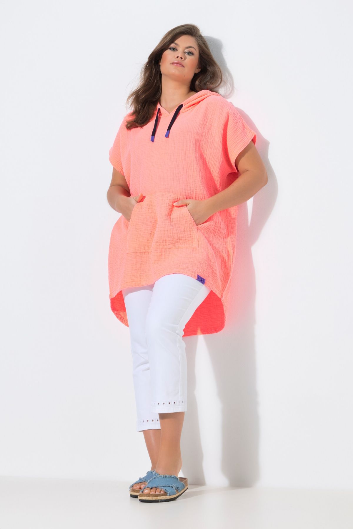 Blouse en mousseline à capuche, manches courtes