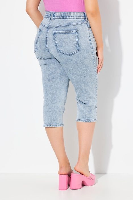Molleton élastique, aspect jean tendance, Jambe carotte, Modèle 5 poches confortable, Passants pour ceinture, Braguette zippée et bouton, Entrej. env. 49 cm.