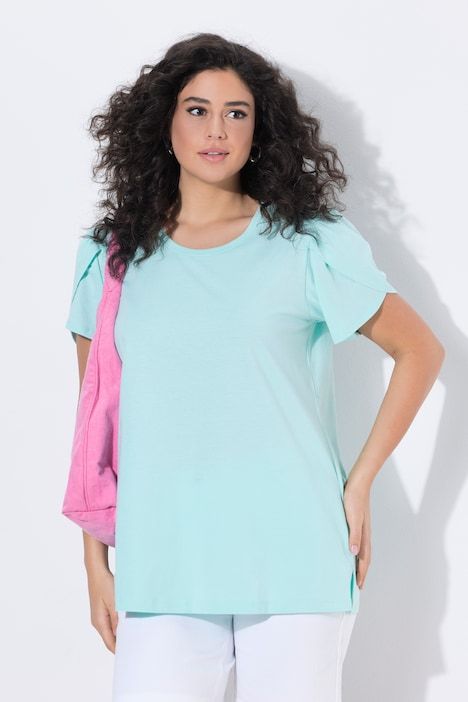 Manches courtes et amples avec drapé, effet de superposition tendance, Col rond, Coupe évasée confortable, Jersey doux et confortable, Pur coton, Long. selon taille env. 72-76 cm.