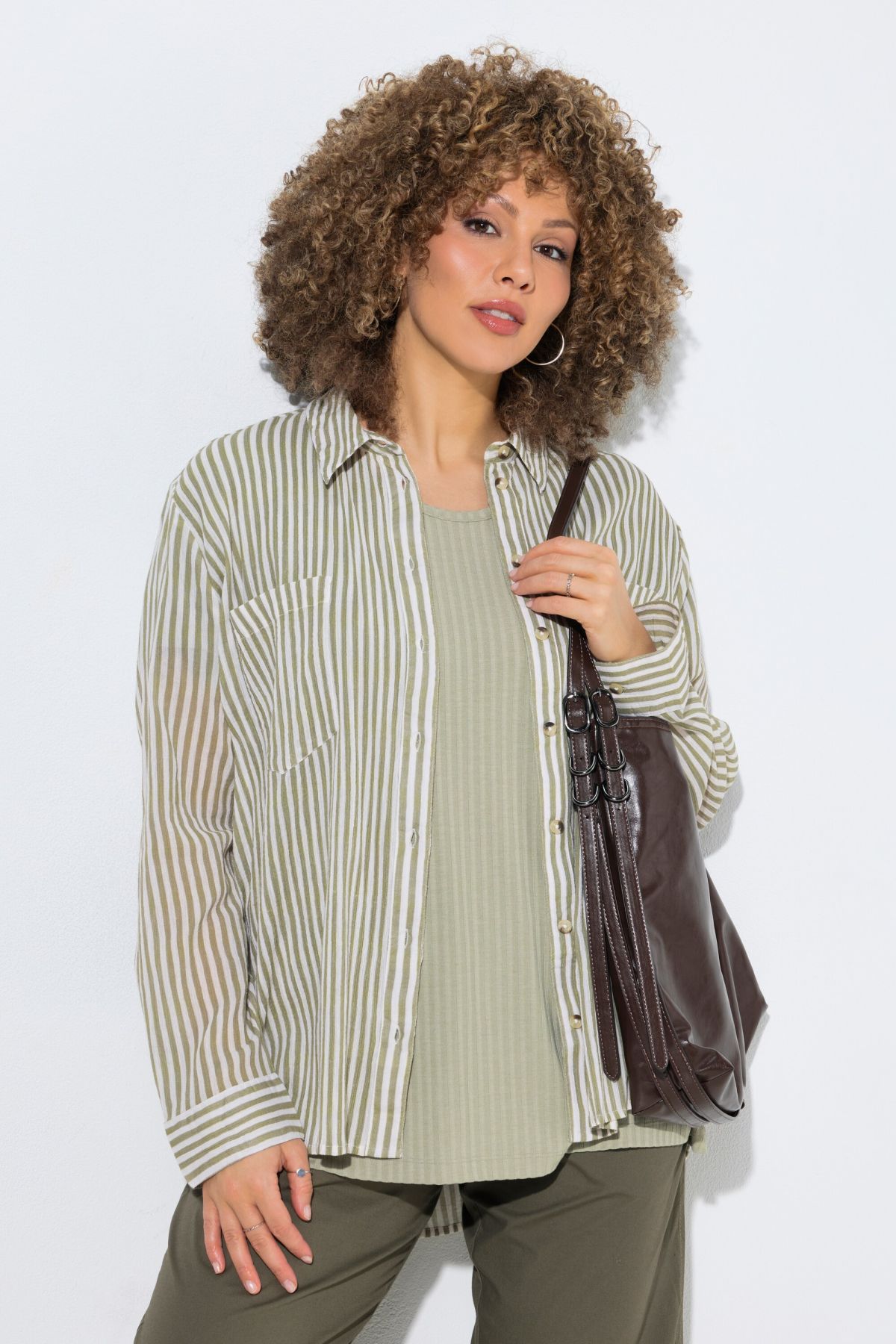 Chemisier rayé en crêpe, manches longues et col chemise