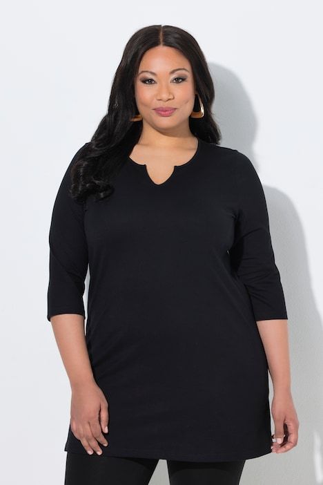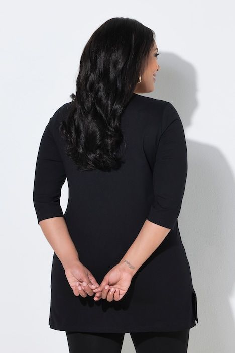 Col tunisien féminin, Coupe évasée plus longue que la normale, base agréablement large, Fentes sur les côtés pour une plus grande liberté de mouvement, Manches 3/4, Pur coton, Long. selon taille env. 86 cm.