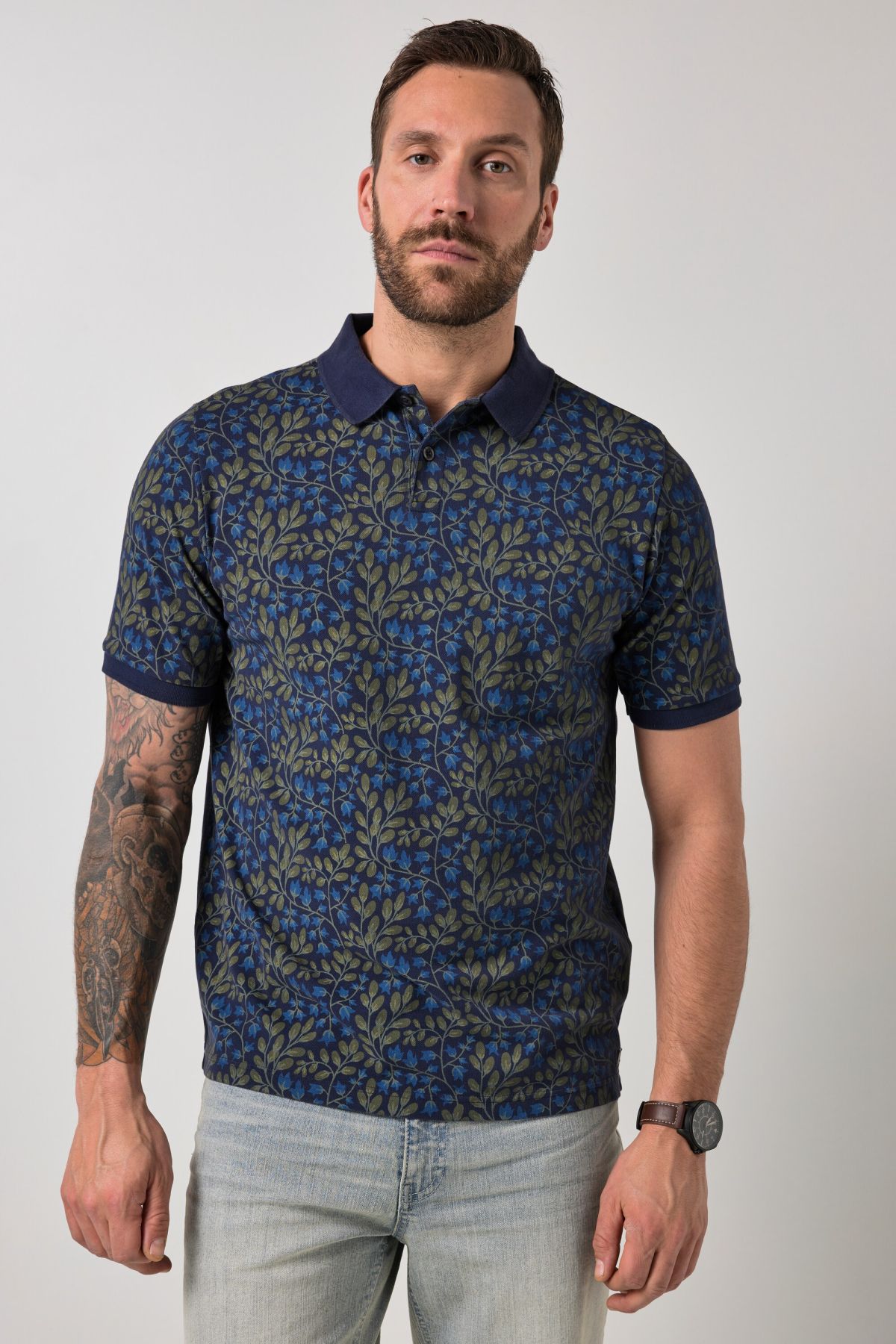 Coupe spéciale jusqu'au 8 XL, Tissu piqué de grande qualité, Style légèrement vintage, Imprimé all-over (intégral), Long. selon taille env. 74-86 cm.