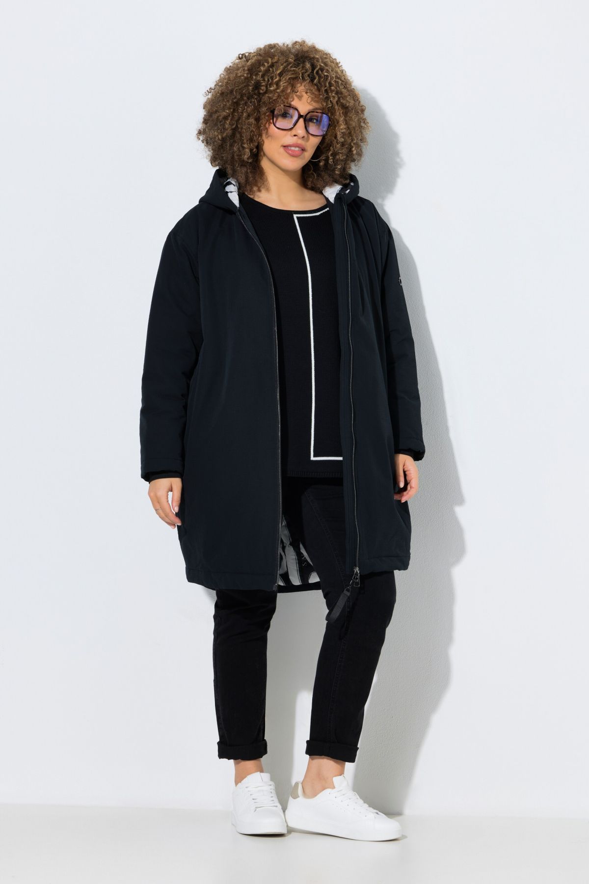 weite O-Silhouette mit modischem Schriftmuster, wasserabweisende Bionic-Finish-Eco-Ausrüstung, Langarm mit Windfang, Nahttaschen mit wärmendem Fleecefutter, Komplettfutter mit Schriftmuster und Zipptaschen, Länge ca. 98-100 cm.