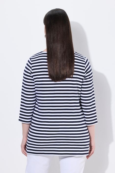 T-shirt à rayures en coton Pima, encolure bateau, manches 3/4