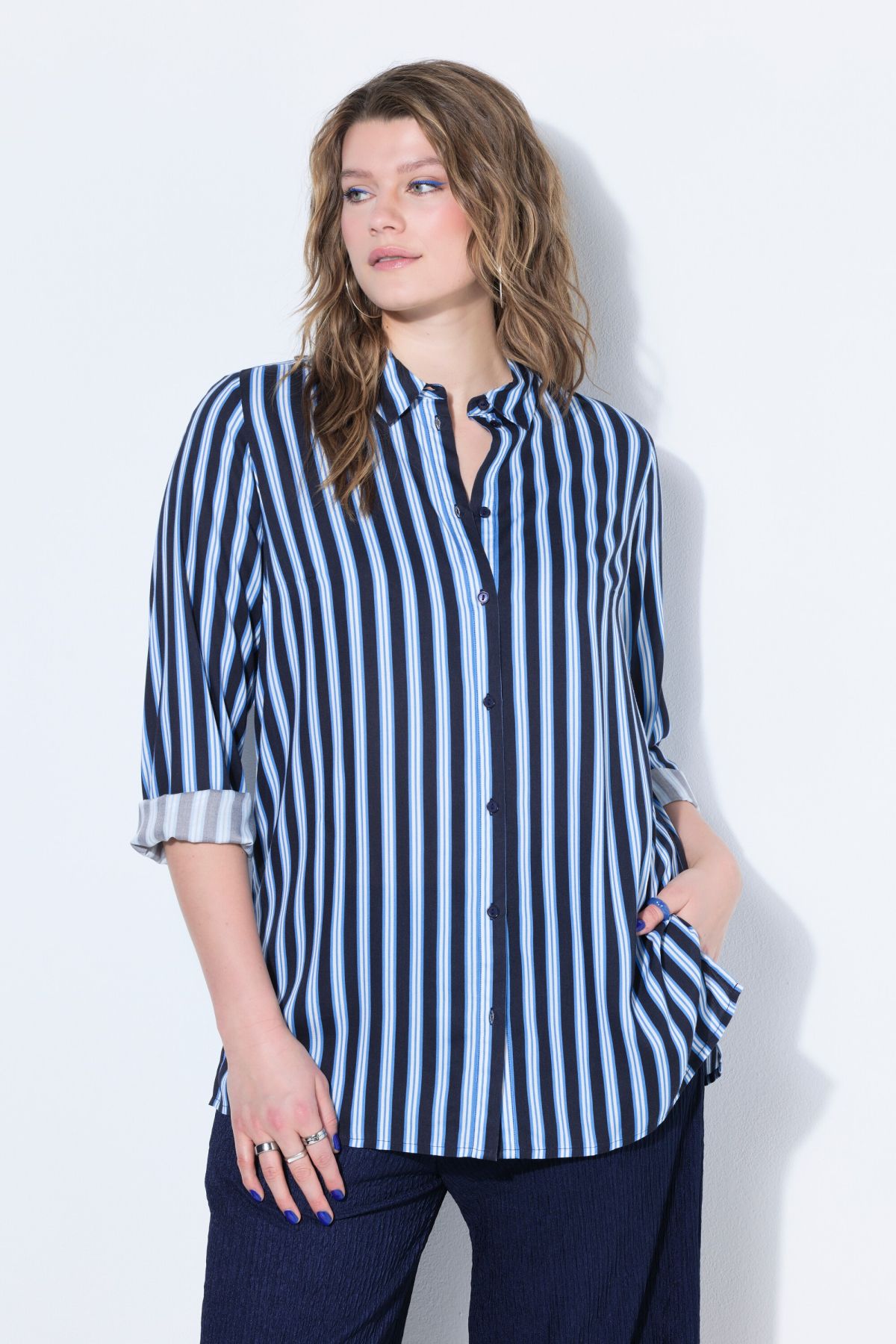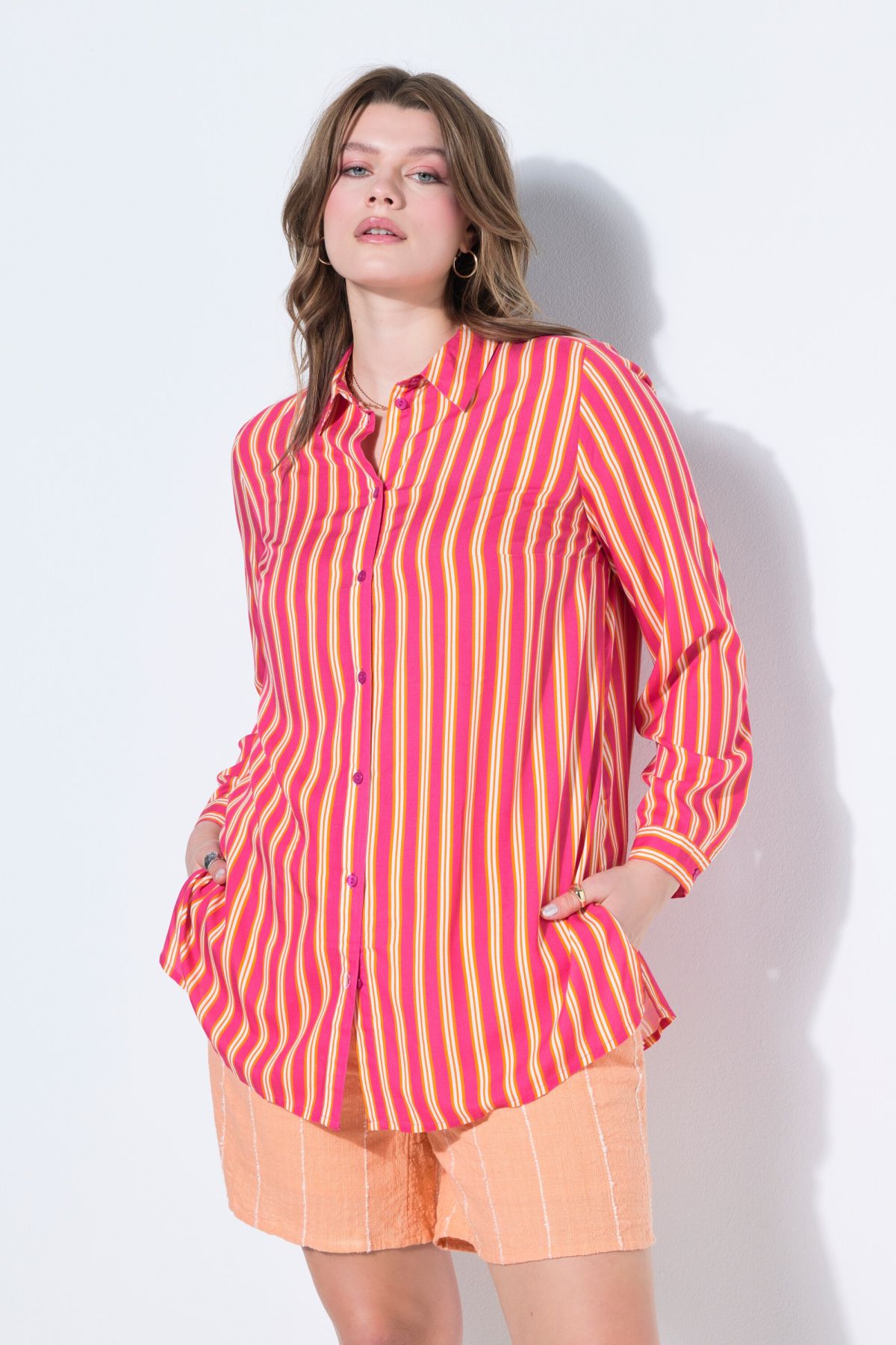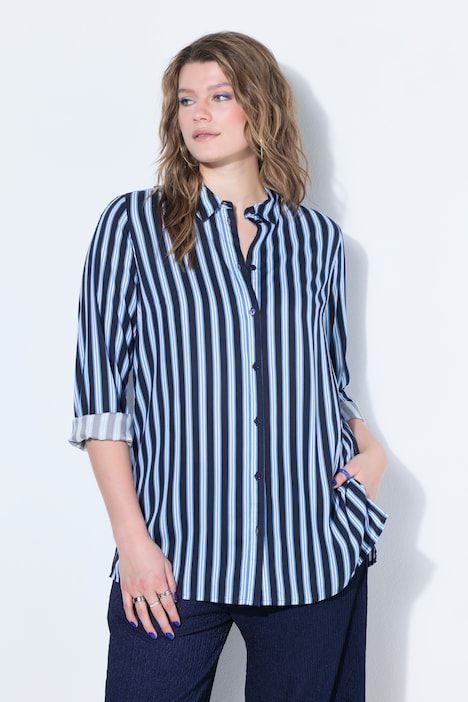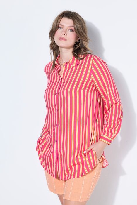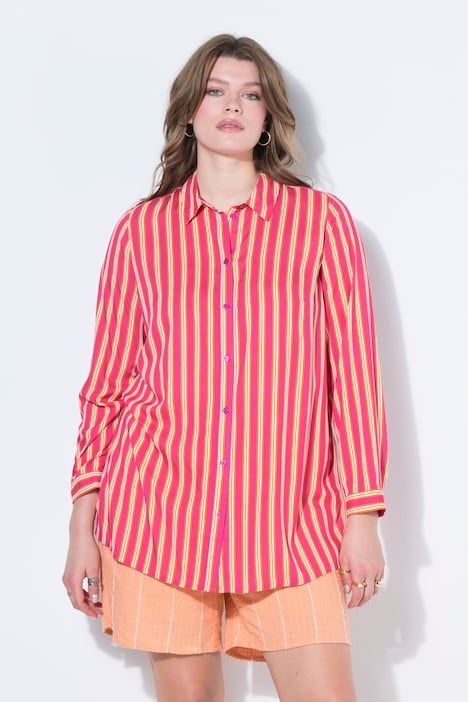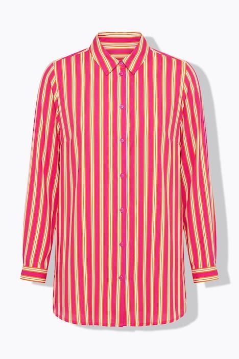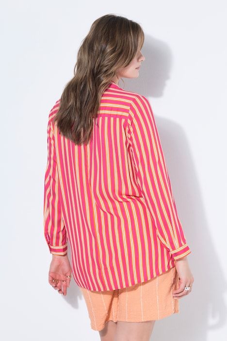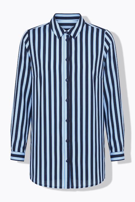 Coupe droite ample, Motif à rayures, Col chemise, Manches longues à poignets, Fentes à l'ourlet, Long. selon la taille env. 80-84 cm.