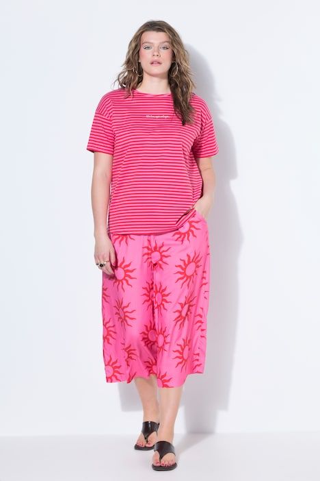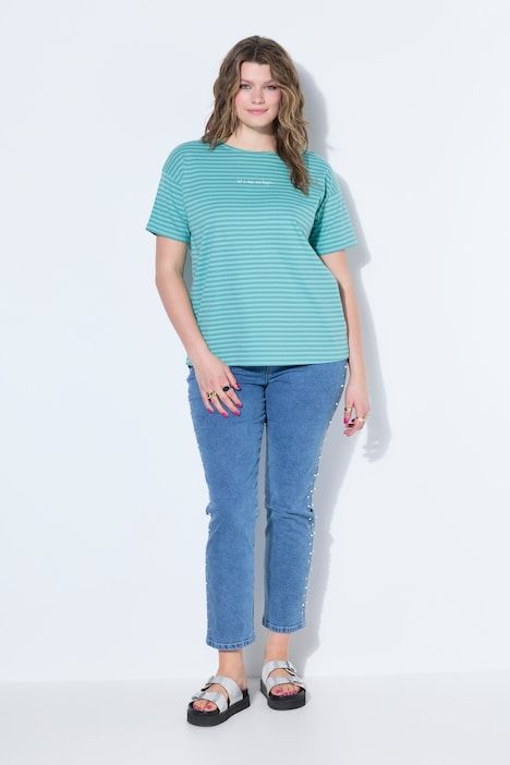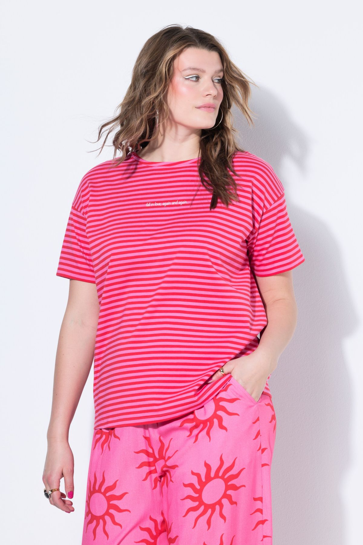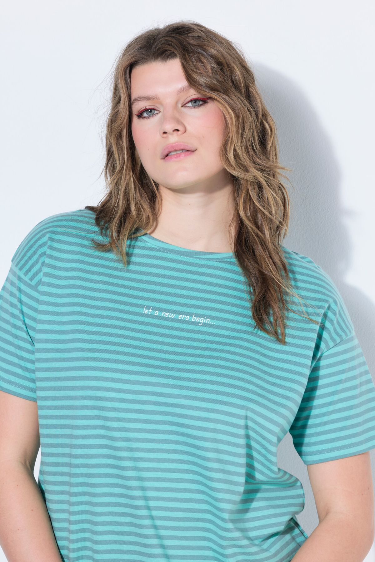 Coupe oversize, Jersey doux à rayures, Message imprimé, manches courtes, Long. selon la taille env. 65-73 cm.