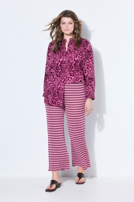 Jambes larges droites, Taille haute, Avec texture fine et rayures, Taille élastique, Entrej. env. 72 cm.