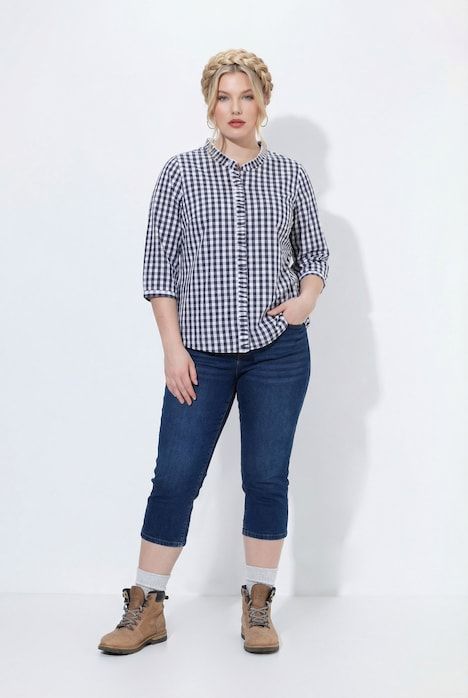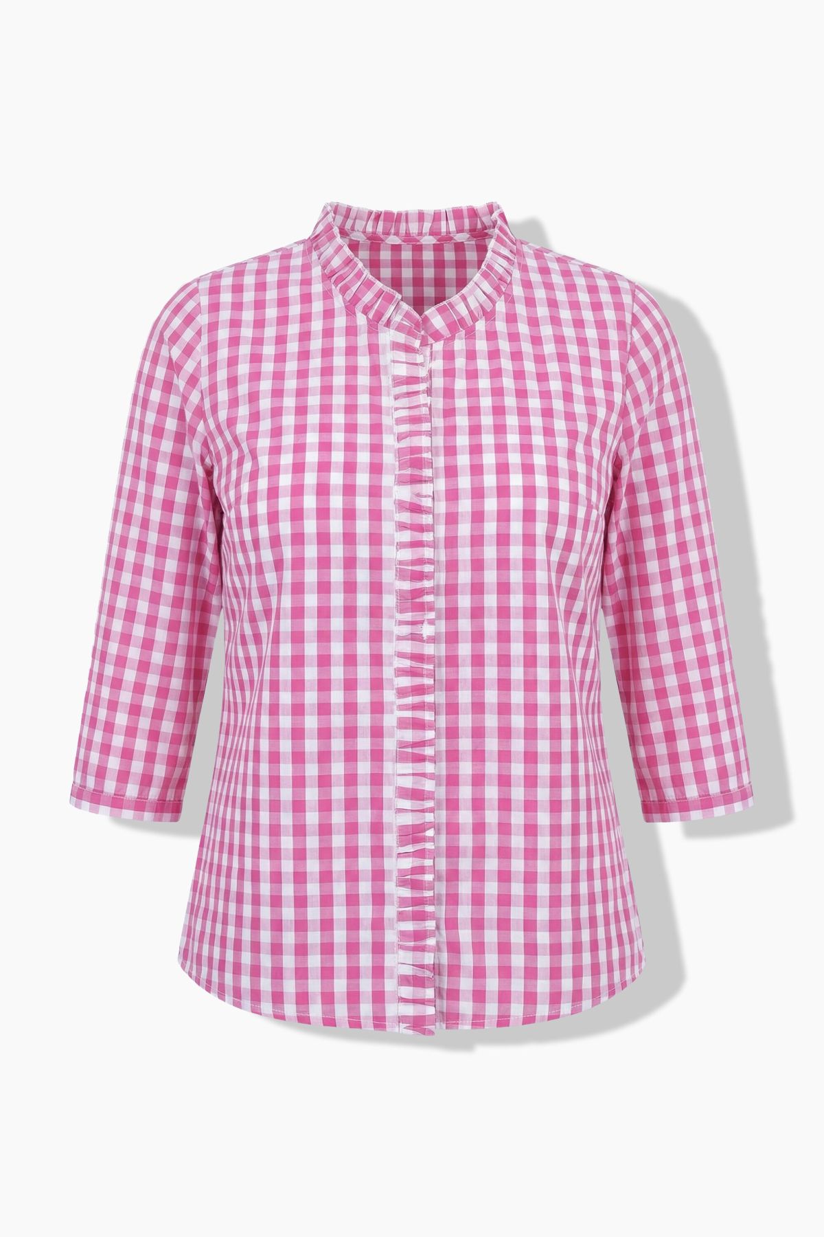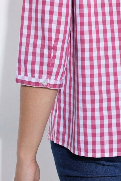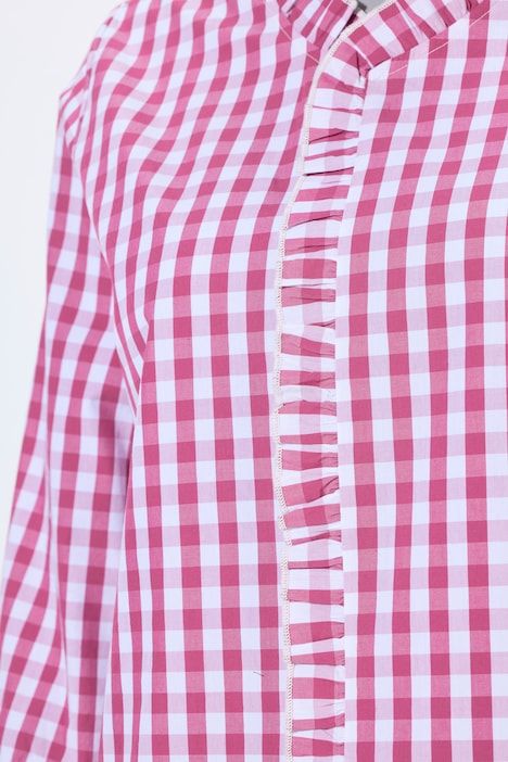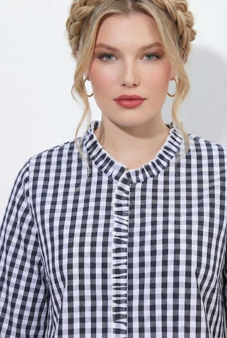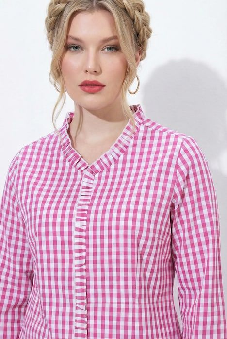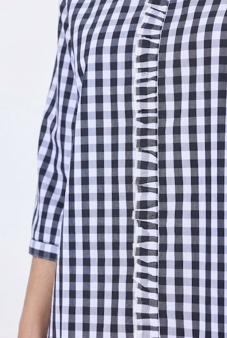 Motif à carreaux tendance, Col montant et patte de boutonnage avec ruchés, Fentes sur les côtés pour encore davantage de confort, Manches 3/4 avec poignets, Pur coton, Long. selon taille env. 68-76 cm.